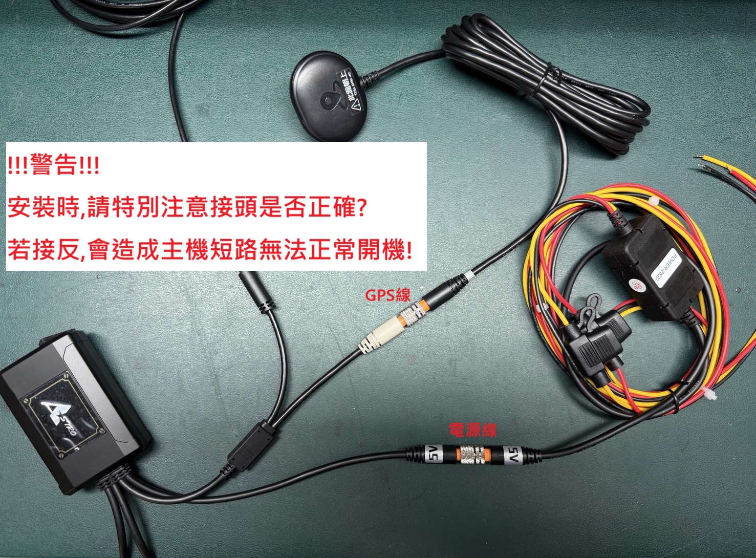 安裝時請特別留意GPS線跟電源線不要接錯,若接反,會造成主機短路無法正常開機,請多加注意!