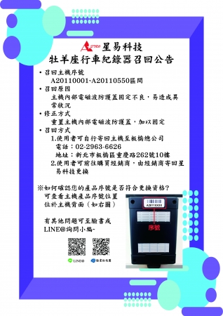 召回原因:主機內部電磁波防護蓋固定不良,易造成異 常狀況