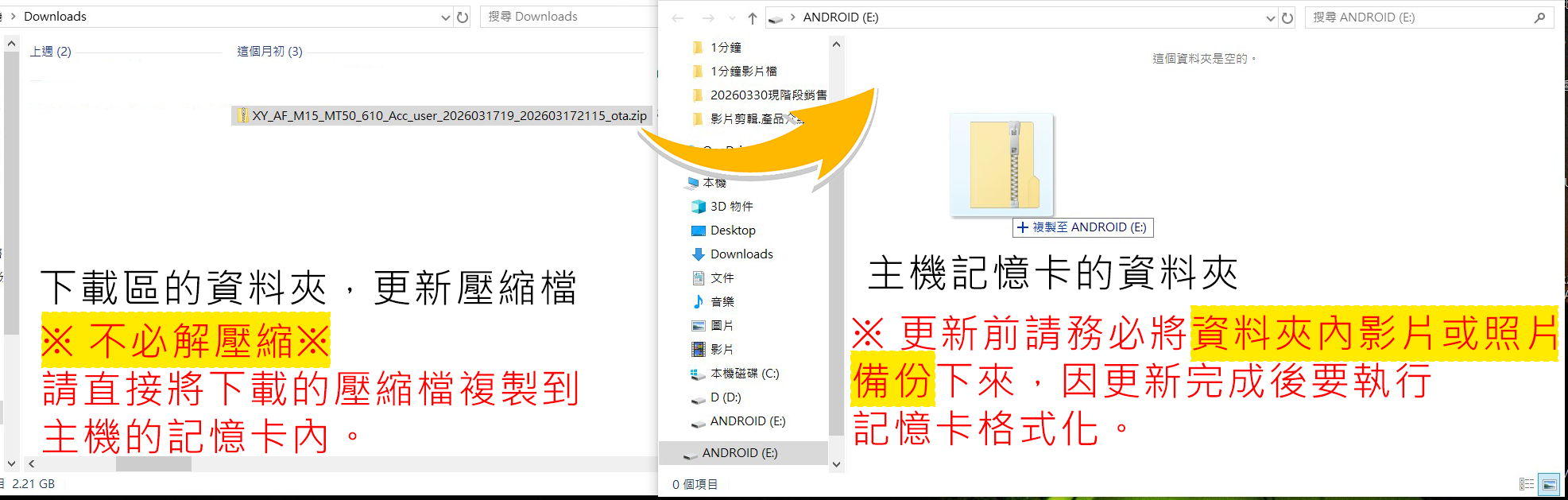 STEP 2. 將記憶卡插入電腦,把下載的更新壓縮檔直接複製到記憶卡中