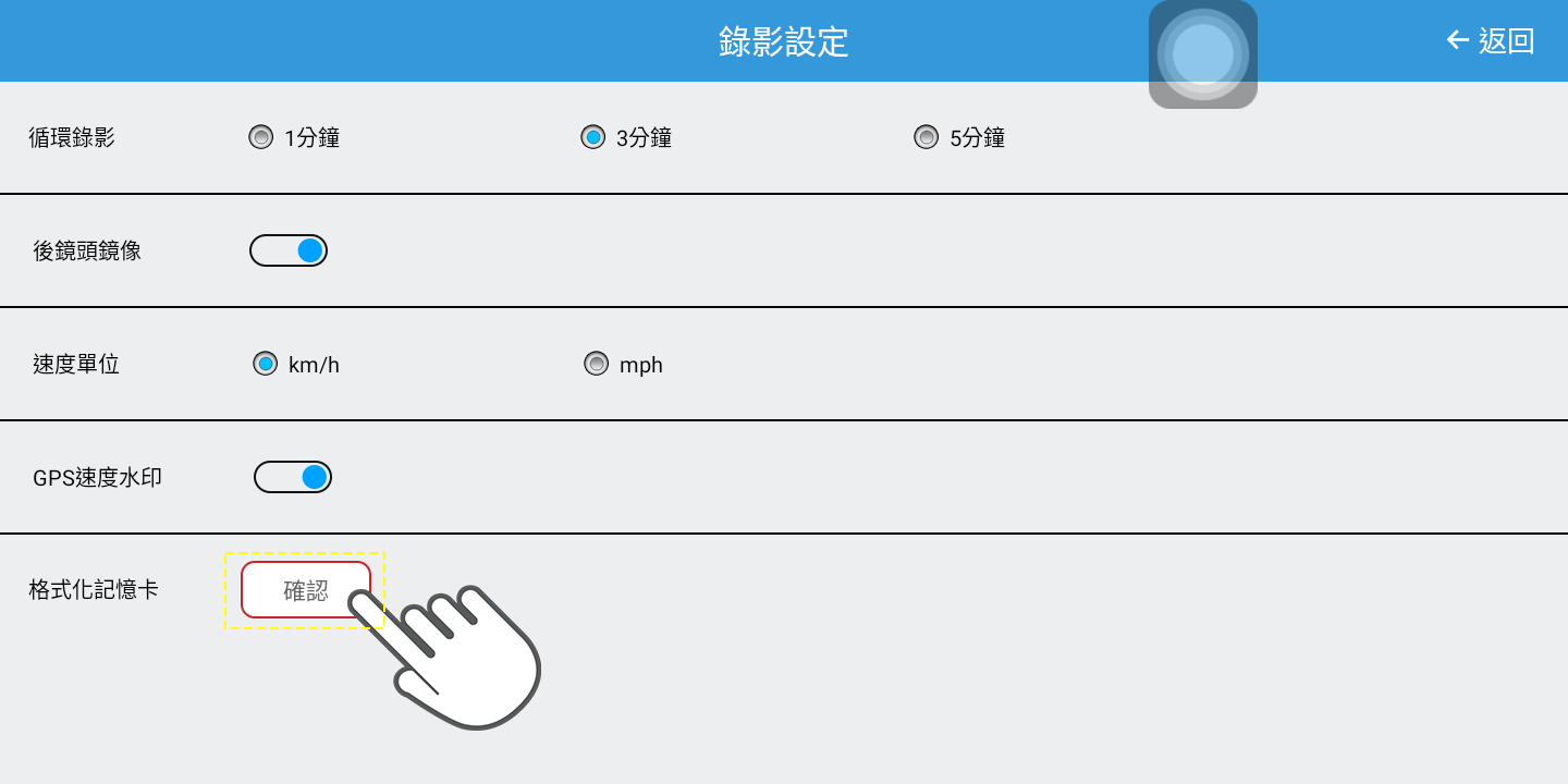可至 行車即時畫面 -> 設定 -> 格式化記憶卡
