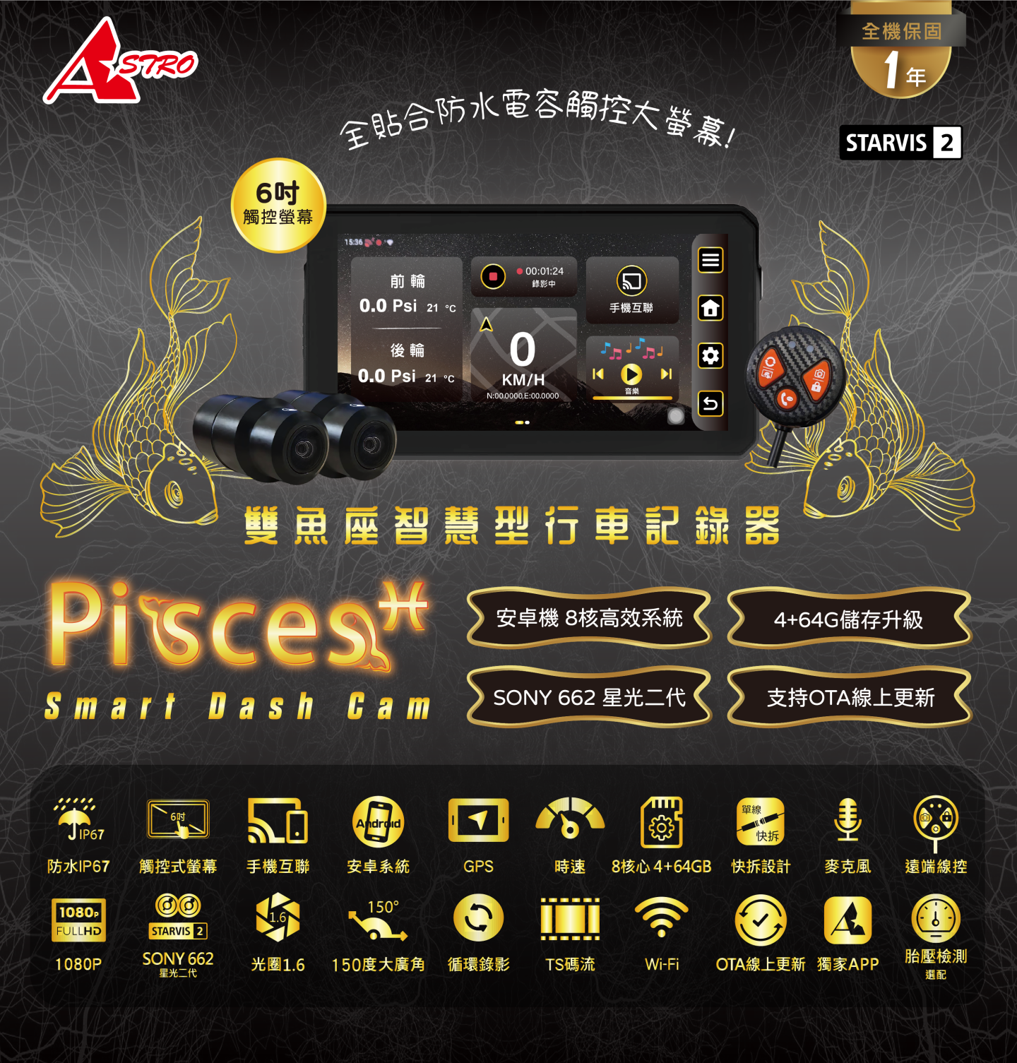智能安卓---Pisces 雙魚座前後雙鏡頭多功能行車記錄器(未正式上市)