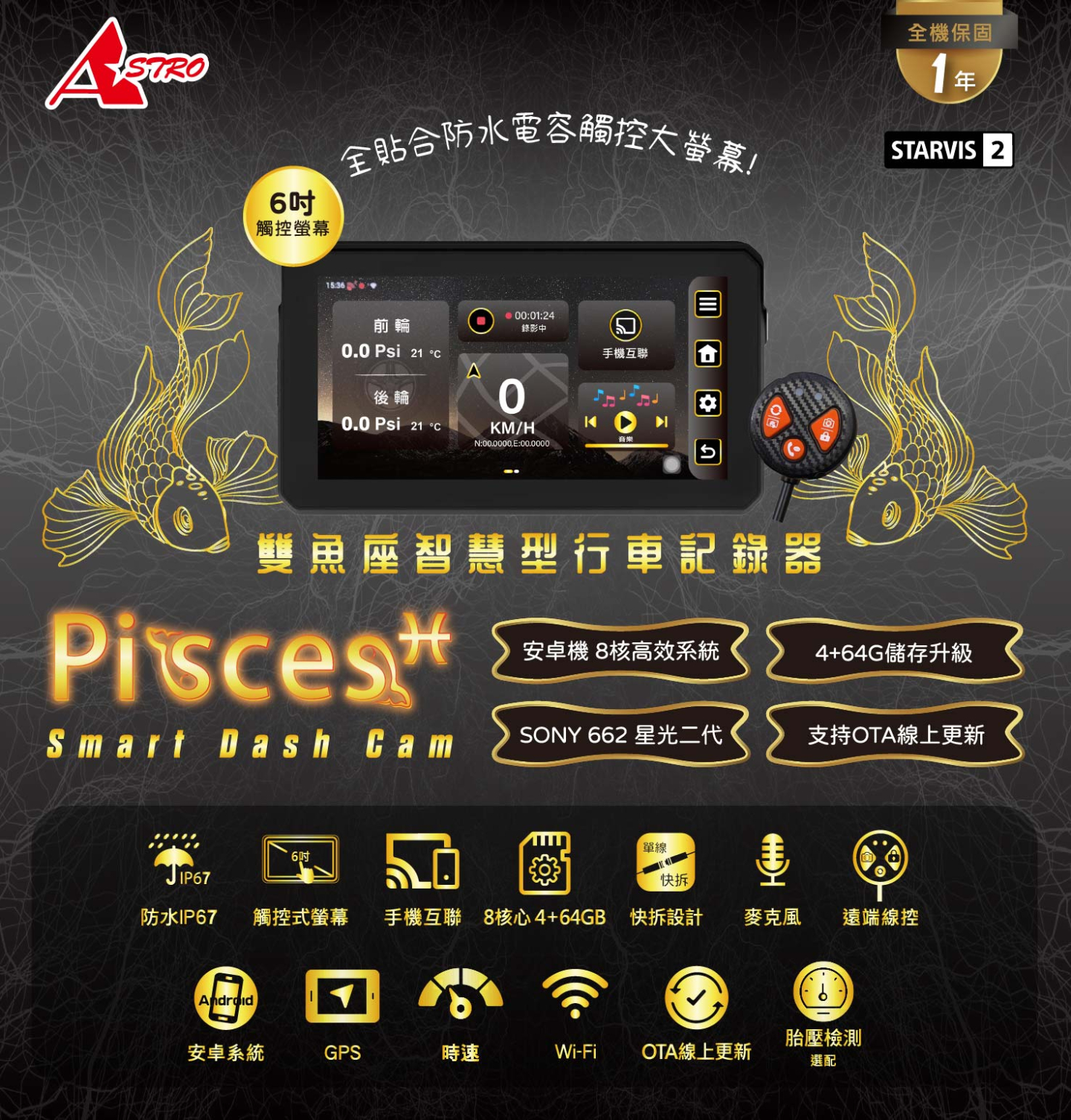 智能安卓---Pisces 雙魚座前後雙鏡頭多功能行車記錄器
