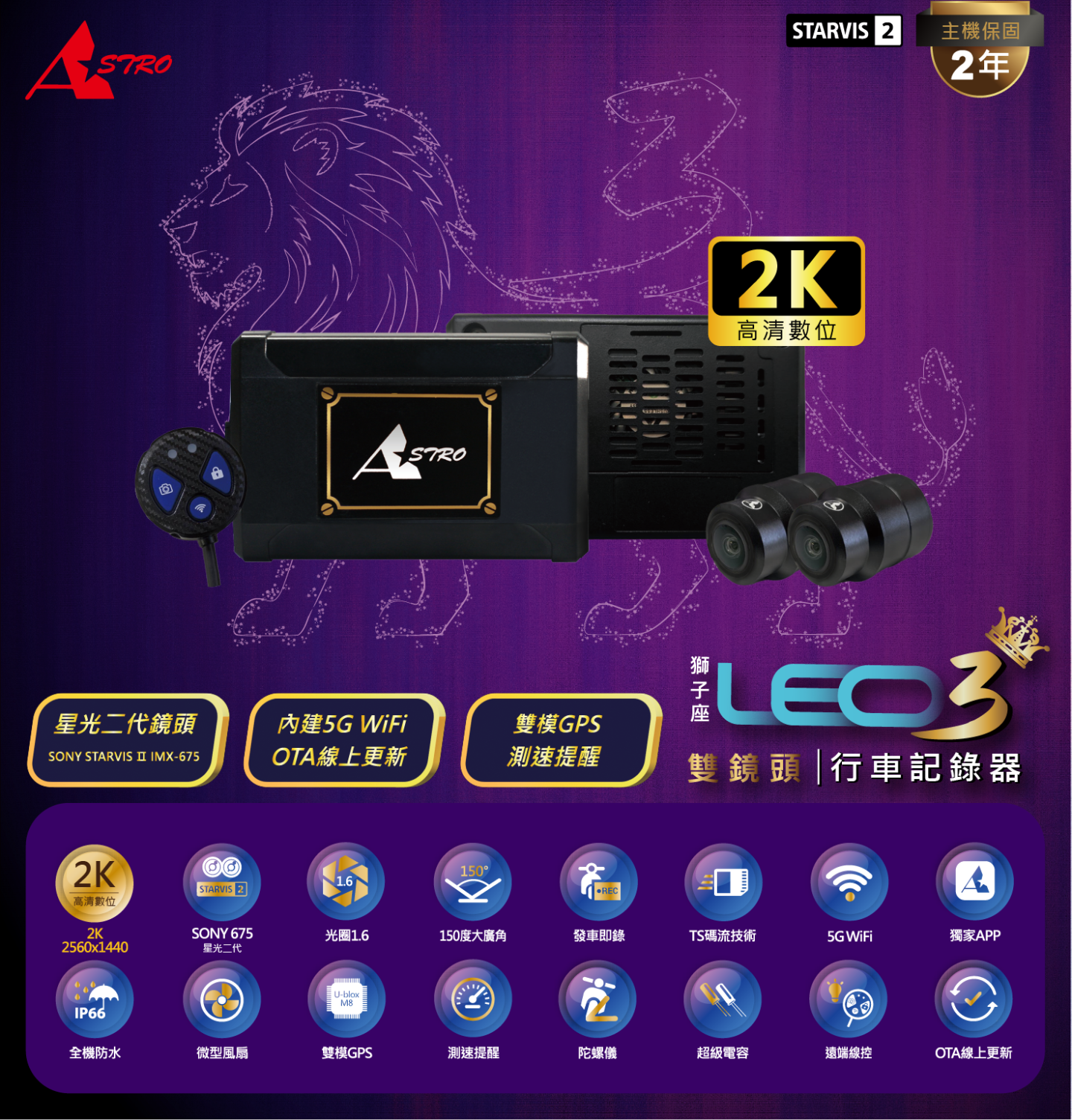 頂級旗艦--Leo3 獅子座3 前後雙鏡頭行車記錄器(未正式上市)